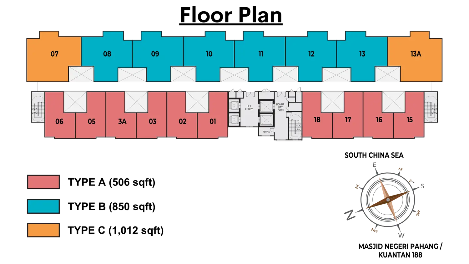Bangunan 32 tingkat, 456 unit Servis Apartment dan 17 unit Kedai (Ground Floor).